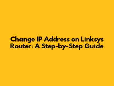 Change IP Address On Linksys Router: A Step-by-Step Guide