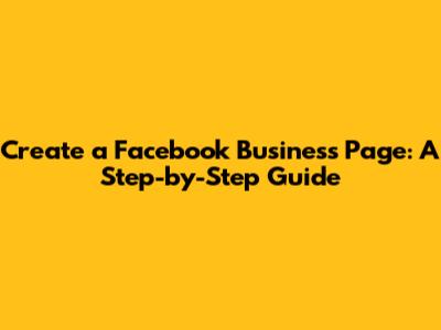 Create A Facebook Business Page: A Step-by-Step Guide