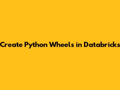 Create Python Wheels In Databricks