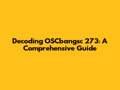 Decoding OSCbangsc 273: A Comprehensive Guide