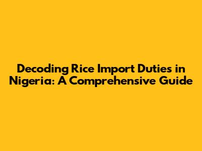 Hey everyone! Today, we're diving deep into the world of import duties on rice in Nigeria. It's a topic that's super important if you're a business owner, an investor, or just someone curious about how the Nigerian economy works. We'll break down the nitty-gritty of tariffs, regulations, and everything in between to give you a clear picture. Let's get started!