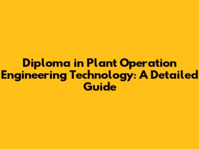 Diploma In Plant Operation Engineering Technology: A Detailed Guide