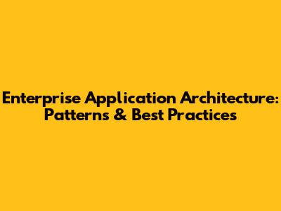Enterprise Application Architecture: Patterns & Best Practices