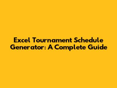 Excel Tournament Schedule Generator: A Complete Guide