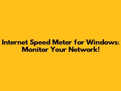 Internet Speed Meter For Windows: Monitor Your Network!