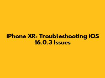 IPhone XR: Troubleshooting IOS 16.0.3 Issues