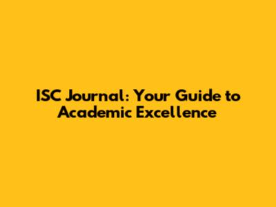 ISC Journal: Your Guide To Academic Excellence