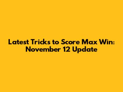 Latest Tricks To Score Max Win: November 12 Update