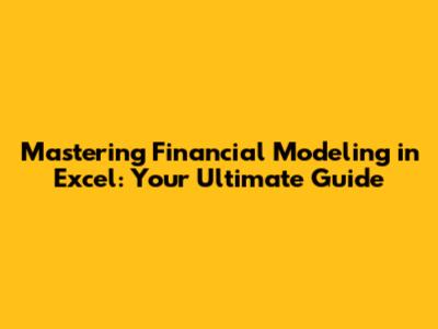 Mastering Financial Modeling In Excel: Your Ultimate Guide