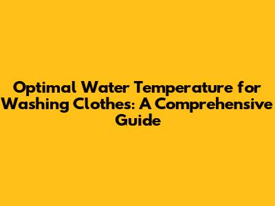 Optimal Water Temperature For Washing Clothes