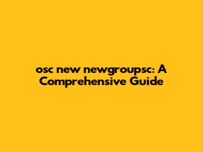 Osc New Newgroupsc: A Comprehensive Guide