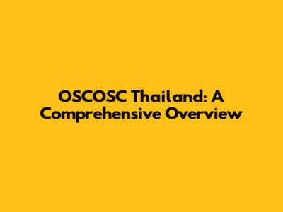 Impact and Significance of OSCOSC Thailand