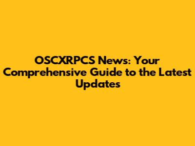 OSCXRPCS News: Updates, Insights & Latest Developments