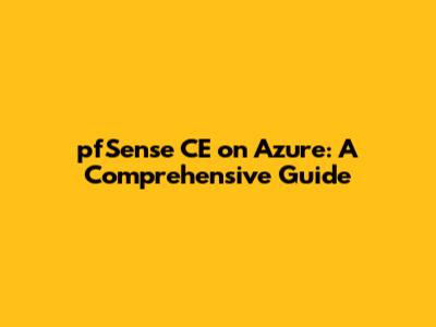 PfSense CE On Azure: A Comprehensive Guide