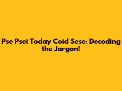 Pse Psei Today Coid Sese: Decoding The Jargon!