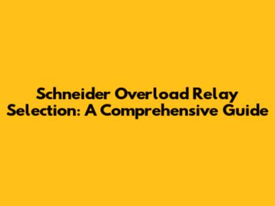Schneider Overload Relay Selection: A Comprehensive Guide
