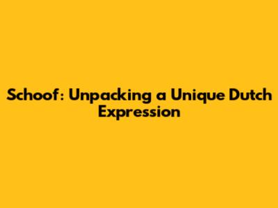 Schoof: A Deep Dive Into The Dutch Expression