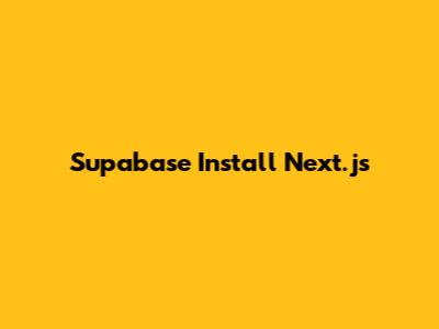Supabase + Next.js: Your Quick Install Guide