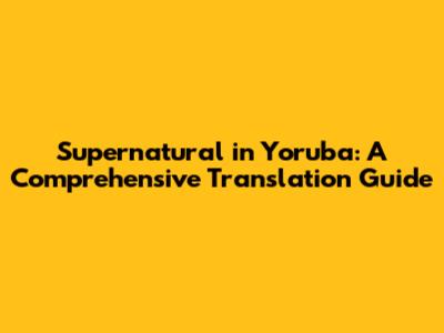Supernatural In Yoruba: A Comprehensive Translation Guide