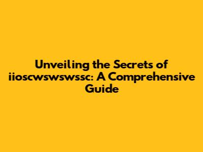 Unveiling The Secrets Of Iioscwswswssc: A Comprehensive Guide